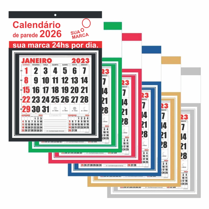 Acabamento: Inclui 1 furo com ilhos de metal e bloco grampeado sobre a base para fácil destaque dos meses.