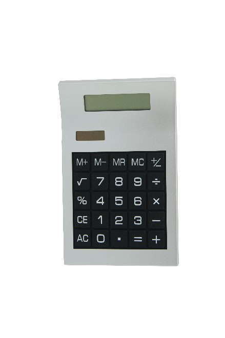 Calculadora de plástico com teclado de borracha. Medidas para gravação (CxL): 3,3 cm x 5,5 cm Tamanho total (CxL): 14,5 cm x 9,2 cm Peso do produto: 77 g